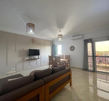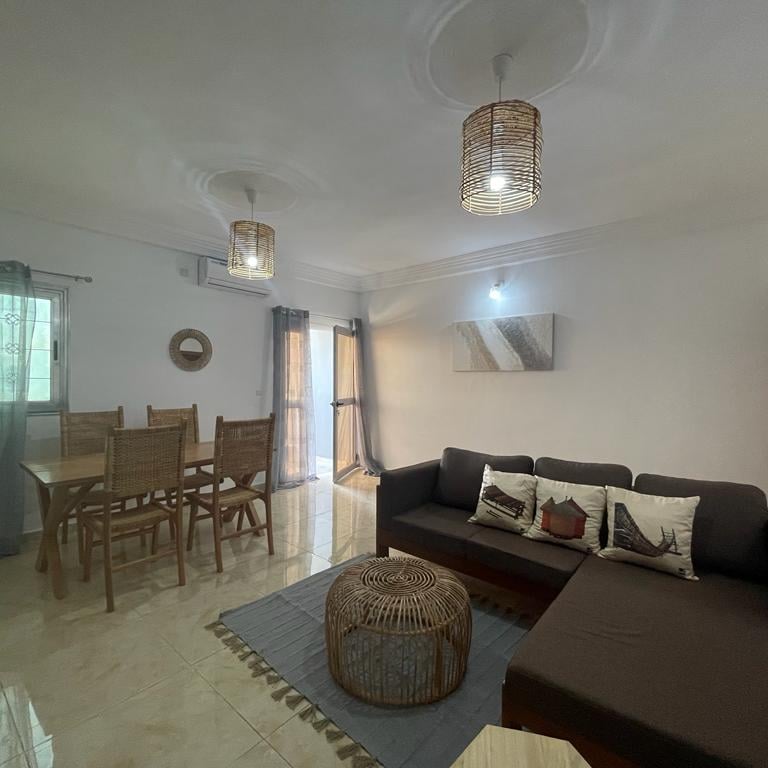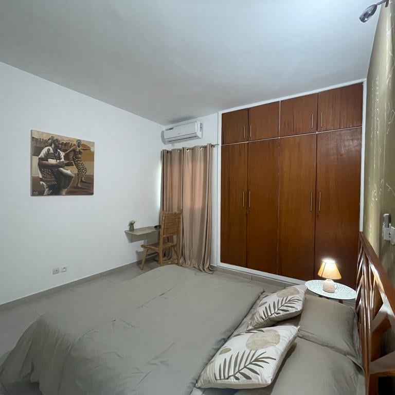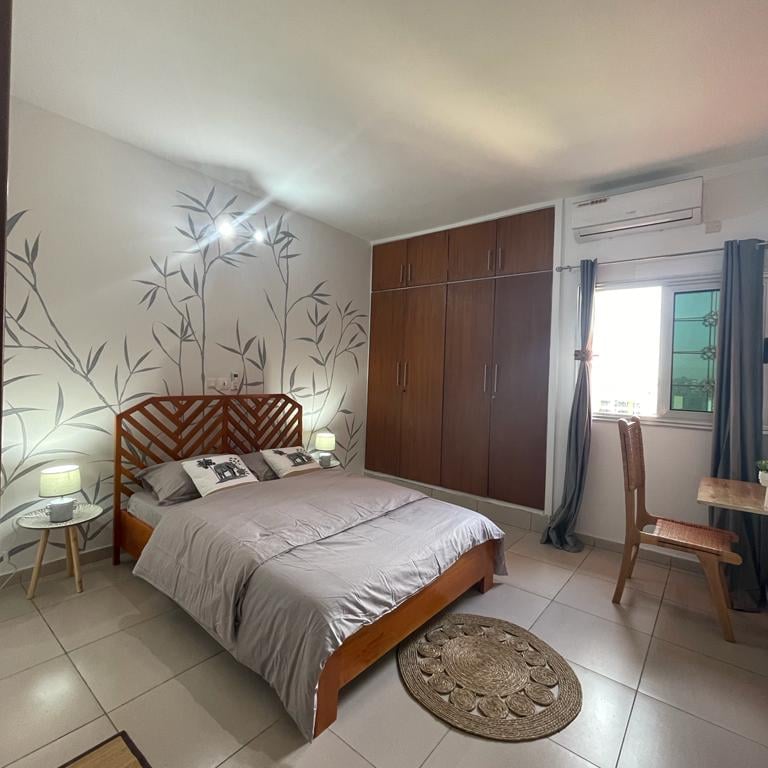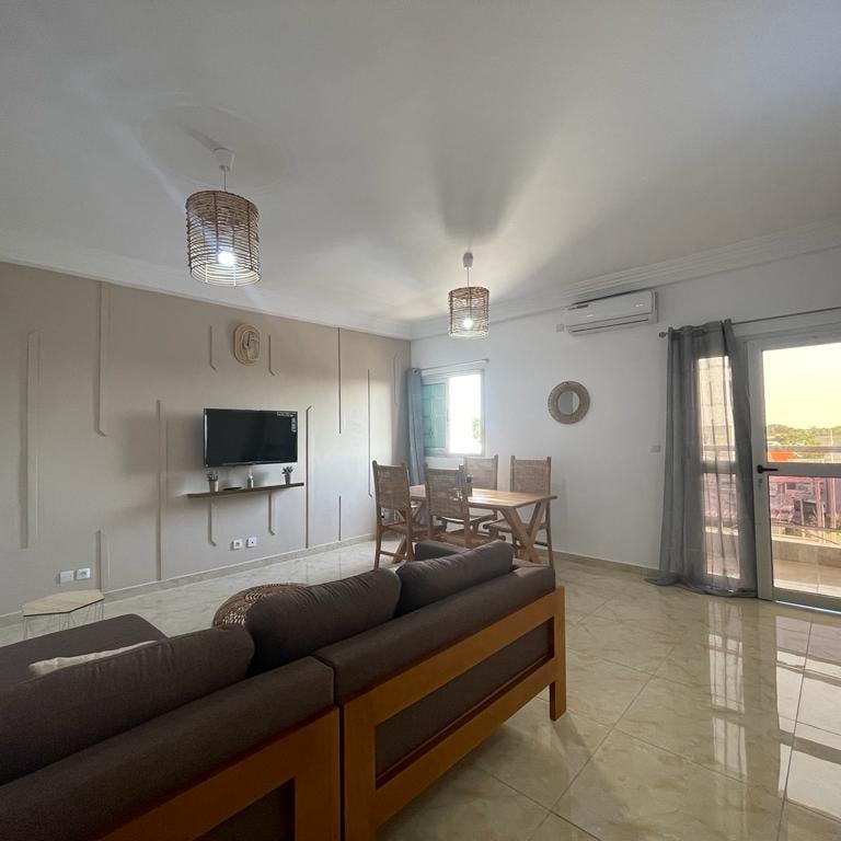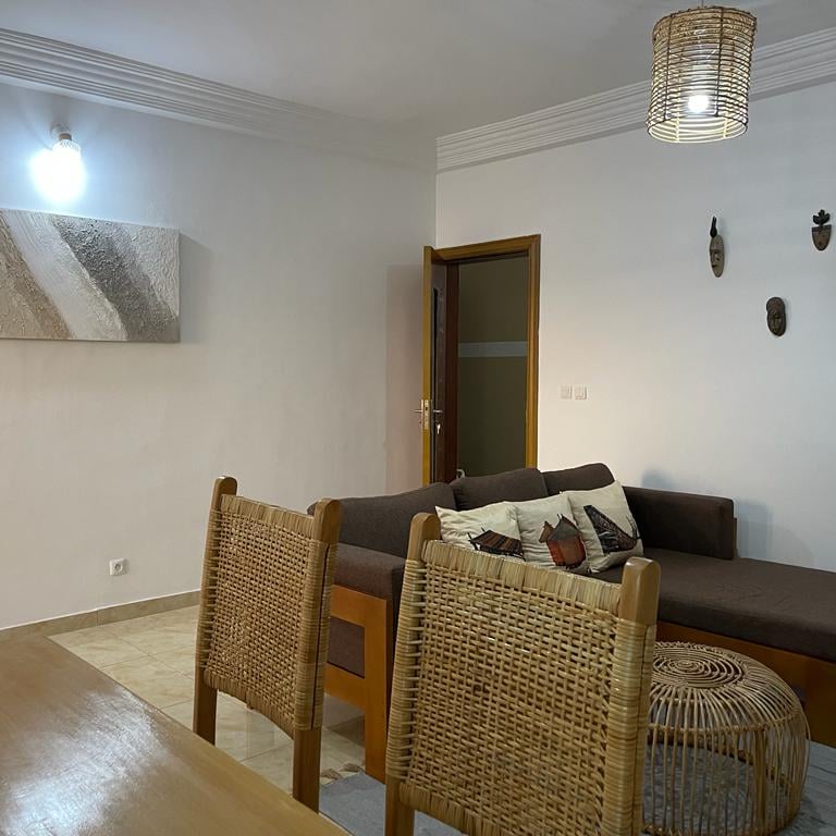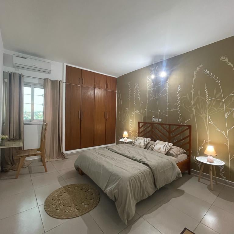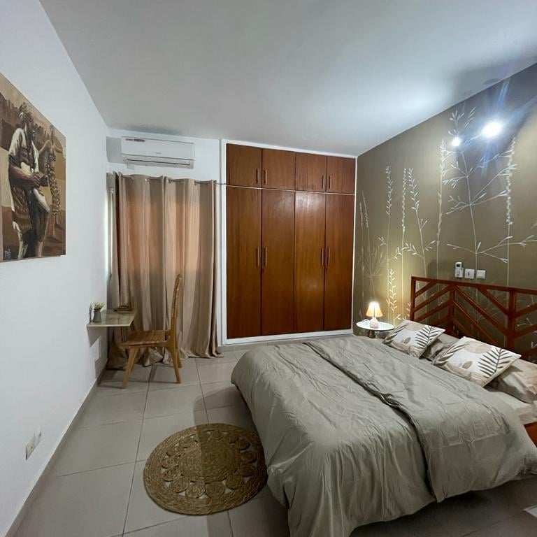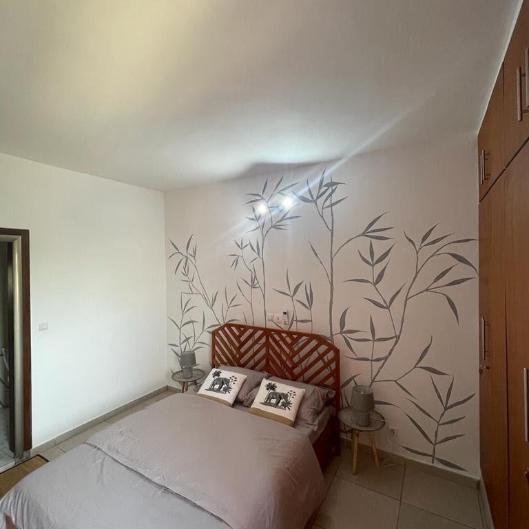 Découvrez "La Case Champêtre", plus qu'un simple appartement meublé, c'est un refuge où la nature se mêle harmonieusement à votre vie quotidienne. un appartement de 3 pièces entièrement meublé au 3ème étage, niché à proximité du rond point de l’ancien camp d’Akouédo. Cet appartement exceptionnel, décoré sur le thème de la nature, offre un cadre de vie agréable et relaxant.