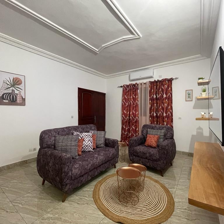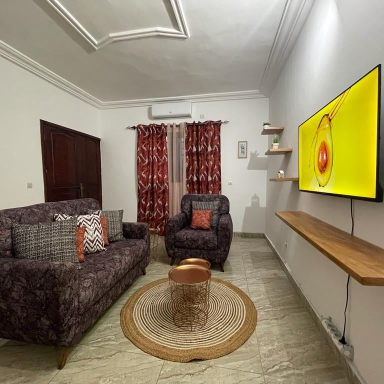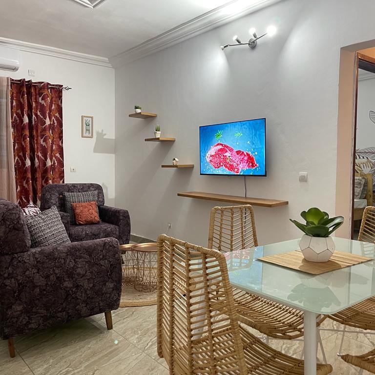 Bienvenue dans notre charmant appartement de 03 pièces, entièrement meublé, situé au rez-de-chaussée, à proximité de la maison Pathéo. Cet espace est conçu pour rendre votre séjour agréable et confortable, avec une touche de décoration colorée et joyeuse pour égayer votre expérience.