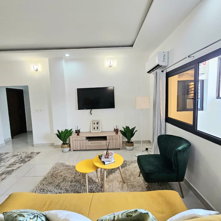 Cet appartement offre un cadre de vie élégant et confortable, parfait pour les séjours de courte ou longue durée à Abidjan. Profitez d'un environnement calme et sécurisé tout en étant à proximité des commodités et des attractions de la ville.